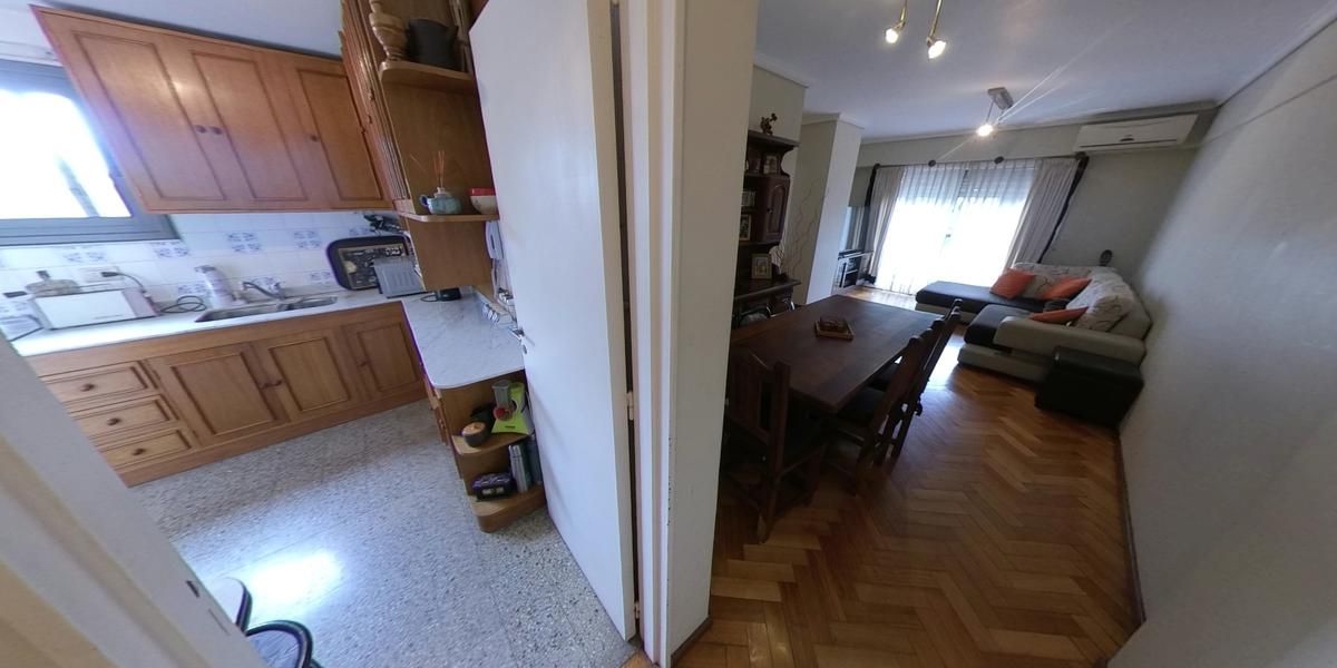 Desde la cocina se accede al lavadero y al patio; el comedor diario está conectado al living y a un balcón.