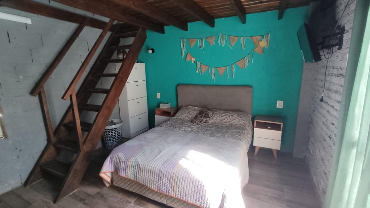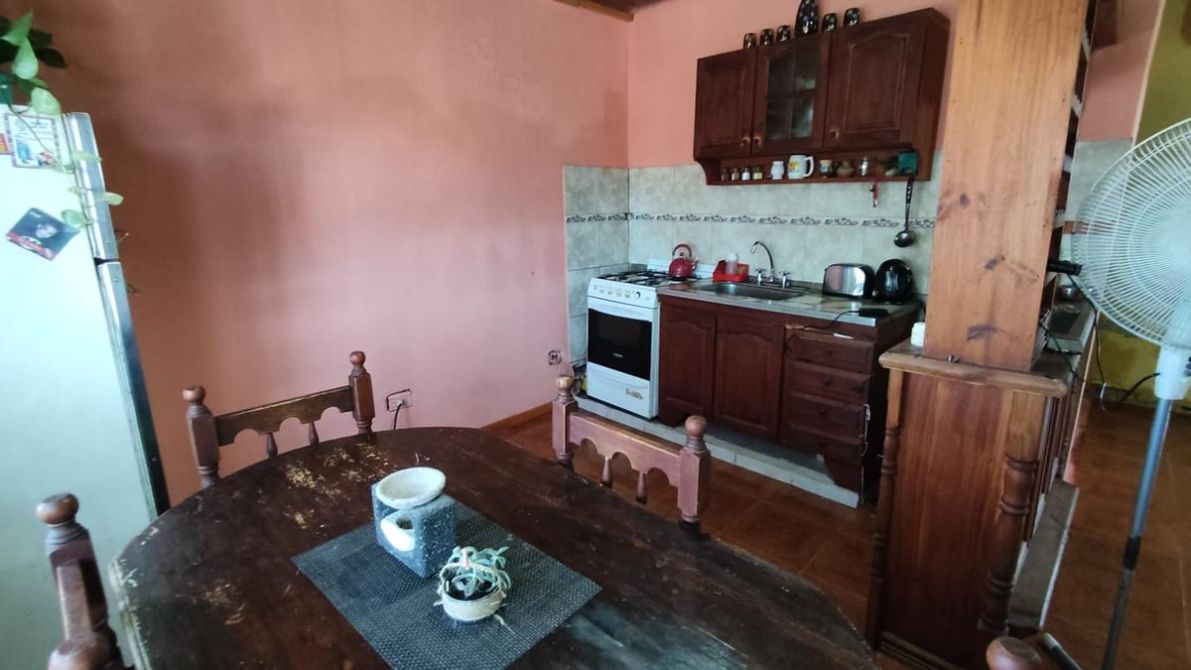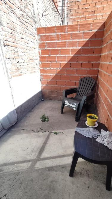 Una vivienda de 2 ambientes - cocina comedor, habitación con entrepiso, patio y baño a terminar.