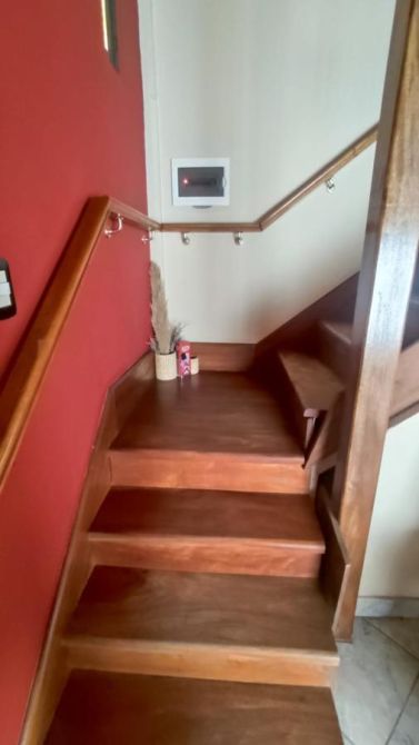 Al ingresar a la casa nos encontramos con el living comedor con pisos de cerámica y persianas americanas, escalera a la planta alta con un pequeño espacio de playroom/vestidor, dos habitaciones y un baño toilette con posibilidad de instalar una ducha/bañera y convertirlo en completo; salida a la terraza con gabinete del termotanque.