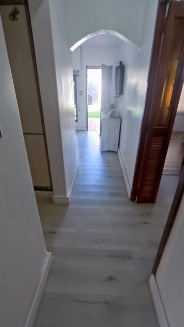 Volviendo a la planta baja, desde el living nos encontramos con un pasillo distribuidor que nos dirige a la cocina amoblada con muy buen gusto, pequeño lavadero en el bajo escalera, amplio comedor con vista al patio. Pasillo distribuidor que nos dirige a dos habitaciones completas, y un amplio baño completo. Este sector de la casa cuenta con pisos de madera gris, muy luminosos con amplios ventanales.