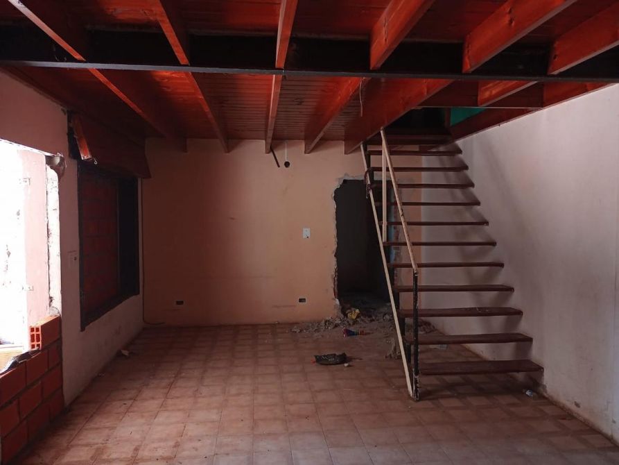 Lote irregular compuesto de 10 m de frente, 44 m en un costado, 51 m al otro costado y 12,52 m de fondo. Cuenta con una superficie cubierta de 185 m2. Living, cocina comedor, comedor formal, baño, 3 habitaciones y fondo libre. El estado es a refaccionar íntegramente.