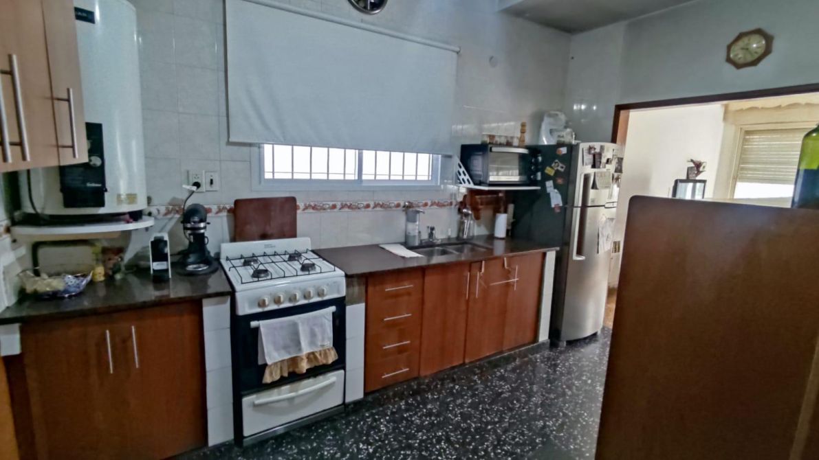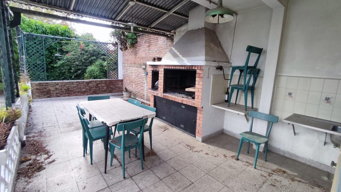 Al frente cuenta con un jardín y espacio para un vehículo descubierto. Ingresando en la casa contamos con un amplio living, amplia habitación que se conecta con la segunda habitación, y a su vez esa habitación se conecta con un amplio living - comedor - diario con un baño toilette, pasillo distribuidor, baño completo renovado. Cocina completa. Patio con extenso jardín arbolado, lavadero y espacio de guardado con baño pequeño con ducha/toilette. Quincho semicubierto con parrilla y mesada con bacha doble de acero inoxidable. Galpón al fondo guarda cosas. Terraza con acceso al techo con membrana. Techo de losa.