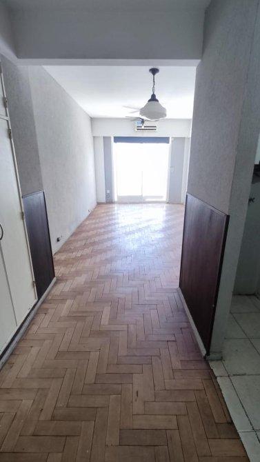 Departamento monoambiente en el noveno al piso al contrafrente. Cuenta con living comedor dormitorio con piso parquet, balcón francés, aire acondicionado y ventilador; cocina separada, placard empotrado, baño completo. Balcón francés.