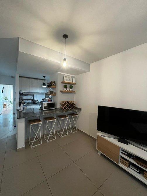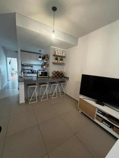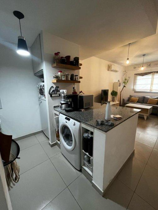 Desarrollado en primer piso al frente, cuenta con cocina living comedor en un mismo ambiente con una amplia isla que divide la cocina del living comedor; baño completo muy amplio, dormitorio con placard, y balcón con vista a la calle Bolívar. El departamento se vende con su cochera cubierta. La totalidad de la superficie de la propiedad (contando la cochera) es de 55m2; el departamento cuenta con 39m2, y 5m2 de balcón.