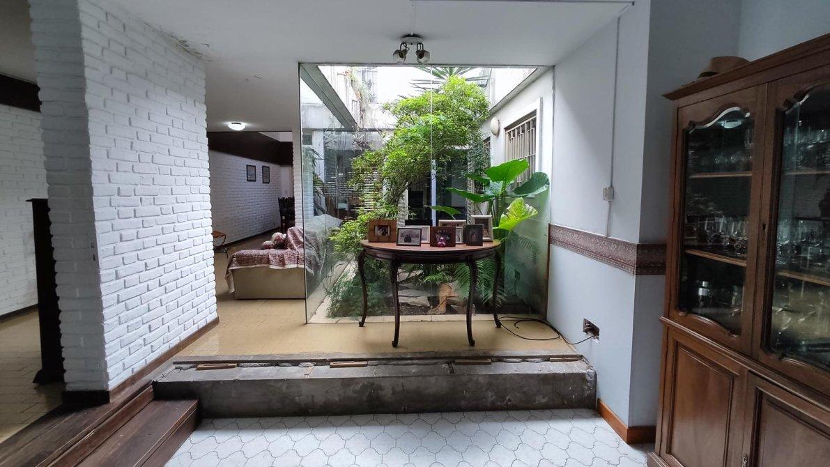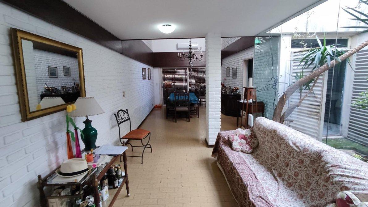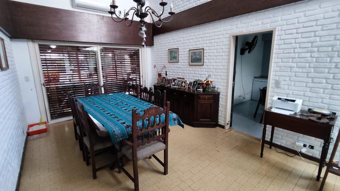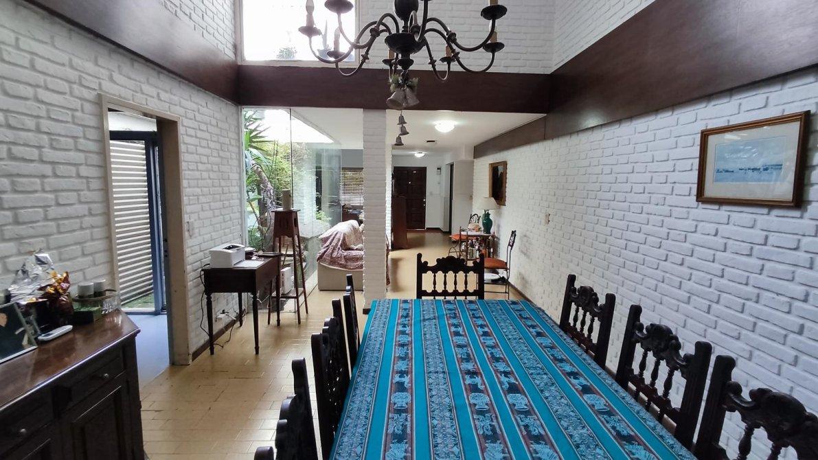 Ingresando por la puerta principal, a la derecha se encuentra un living en desnivel con vista al jardín de invierno, a la izquierda una puerta corrediza que al correrla, se encuentra un pequeño living y las escaleras a la planta alta. Comedor formal con vista al jardín de invierno. Cocina comedor diario, conectada a la alacena con entrada de dependencia independiente desde la calle, caldera, y un baño toilette que conecta con el amplio quincho comedor conectado al jardín. En planta baja por pasillo, se encuentra el baño principal, tres dormitorios con placard empotrado y pisos parquet y el tercer dormitorio en suite con vestidor. Amplio jardín con pileta, al fondo quincho con parrilla y, en caso de hacer pasante la cochera, al fondo cuenta con una segunda cochera cubierta; lavadero y baño toilette. Desde el jardín se puede acceder a la planta alta que se conecta con un espacio de living, un dormitorio, un baño y un espacio de guardado (actualmente la planta alta se utiliza como departamento independiente).