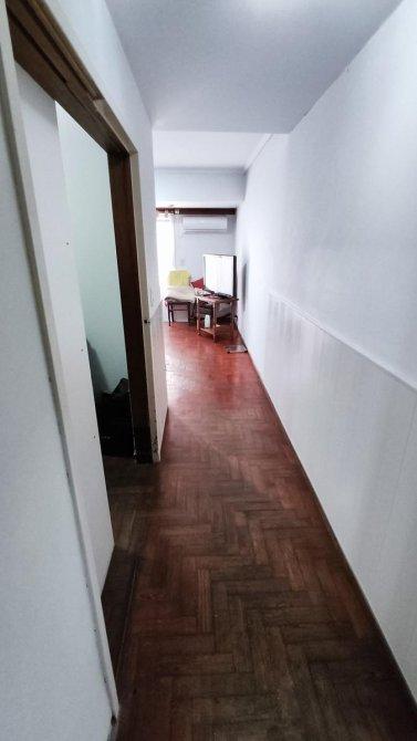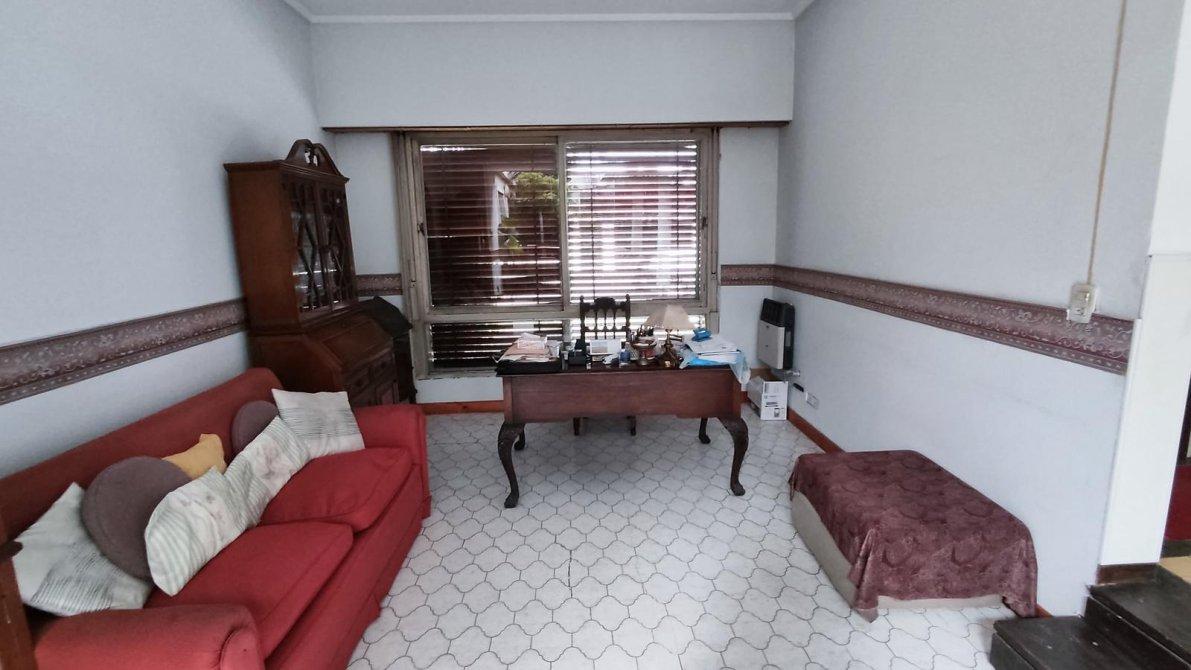 Se desarrolla al frente con un hermoso jardín, y tres entradas independientes: la principal al living de la propiedad, la segunda que dirige a la planta alta y la tercera de dependencia directamente a la alacena. Cuenta con cochera para varios autos y posibilidad de hacerla pasante hasta el fondo de la propiedad.