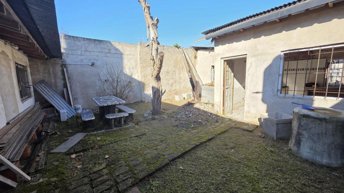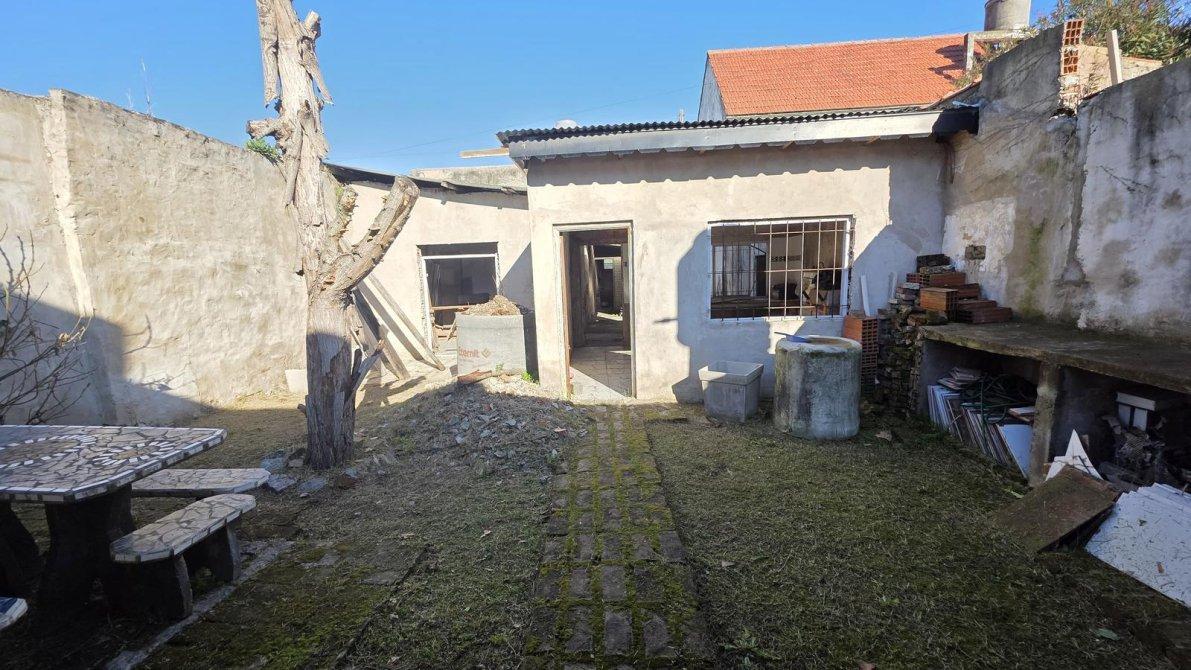 Desarrollada sobre un lote de 8,66 x 30,27 (262m2). Se trata de una propiedad al frente con una construcción estilo chorizo a refaccionar; con cochera pasante, aberturas de aluminio compradas pero no instaladas, tres dormitorios con pisos de cerámica ya colocados - techos muy altos. Las primeras dos habitaciones cuentan con techo instalado; sector de baño a terminar de instalar, cocina a terminar de instalar. Patio. Y en el fondo de la propiedad un departamento dos ambientes completamente instalado y habitable (cuenta con termotanque eléctrico).