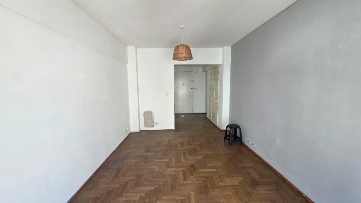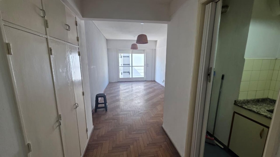Se trata de un departamento monoambiente ubicado en el 5to piso contrafrente en un edificio comercial. Cuenta con un amplio ambiente con pisos de parquet, kitchnet, baño completo, pequeño placard al ingreso y balcón francés.