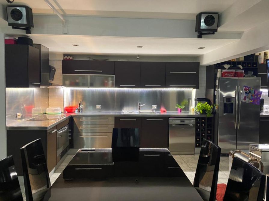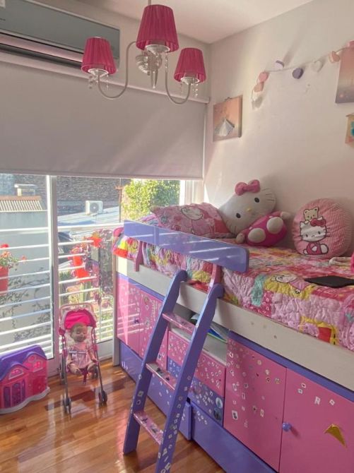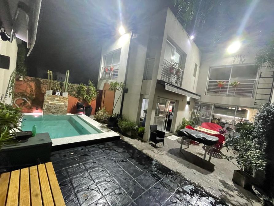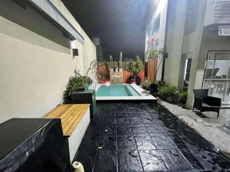 Amplio patio con toldos eléctricos y piscina propia, climatizada, revestida y con cascada. En planta baja se desarrolla el living comedor - Cocina equipada con muebles Jhonson, triturador, horno y anafe eléctrico, conexión para lavavajilla y lavarropas. Excelentes terminaciones y calidad de materiales.- Baño toilette.